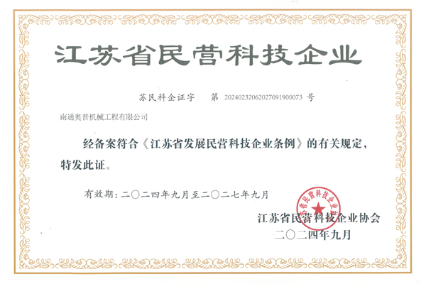 南通奥普机械工程有限公司 >> 资质荣誉 >> 江苏省民营科技企业