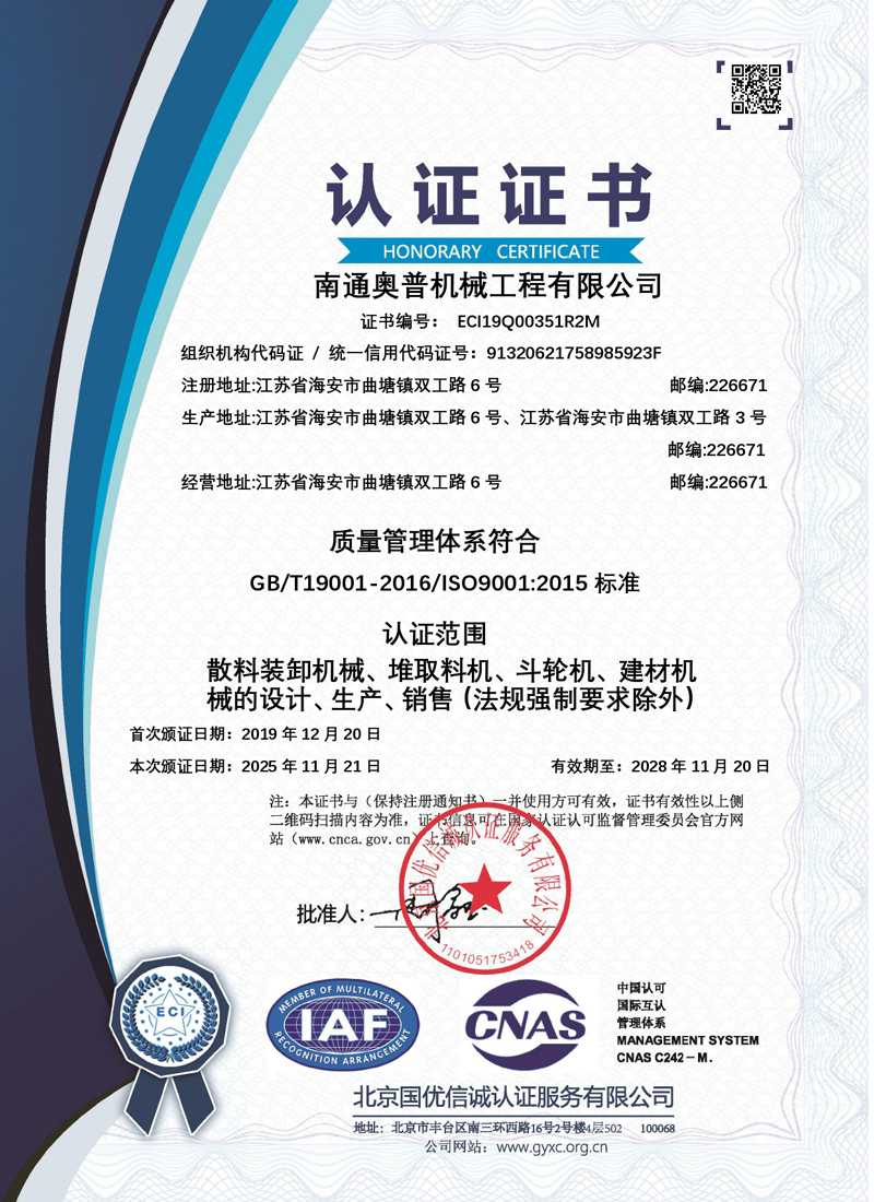 质量,是企业的生命。奥普人深知:创造优质可靠的产品,才是企业屹立于行业前端的基石。公司将“客户的需求是我们的追求”作为永恒的质量承诺,严格实施 ISO9001 质控体系,制定了详细严谨的程序文件,确保质量体系持续改进,有效运行。公司在材料保障上严格把关、在过程控制中精益求精,现建有检测中心,配备了精良的检测设备,从材料的物化分析到结构制作件的尺寸测量、焊缝探测,再到产品预装试验,表面质量检测等,为产品生产周期内全方位质量控制提供了可靠的硬件保障。